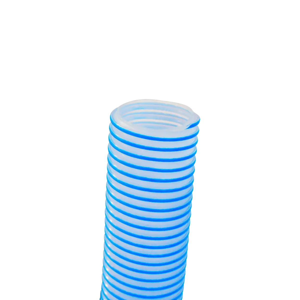 Manguera flexible flotante Vulcano Cristal de ø1 1/2" con un largo total de 30 m. Fabricada con material virgen, garantiza una excelente vida útil, resistiendo a la abrasión por los rozamientos que se producen normalmente con el uso.